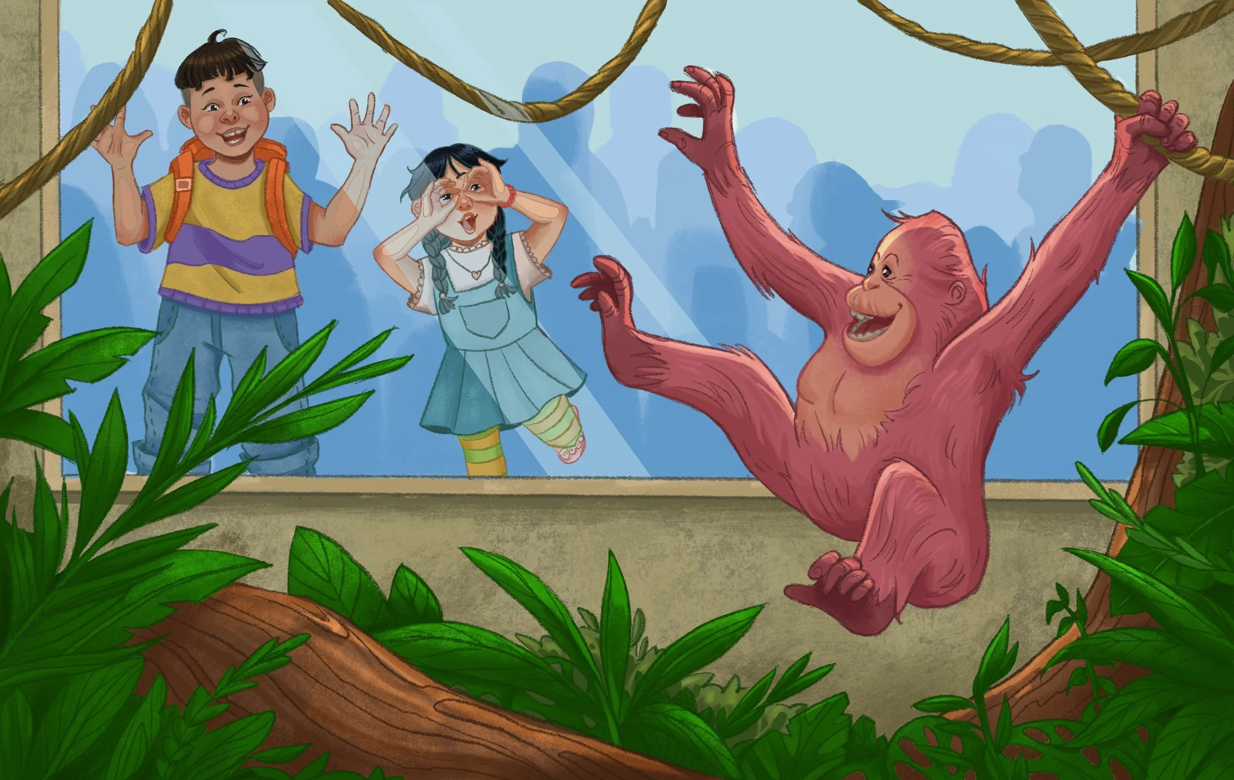 A narrative piece of two siblings visiting an ape during their day at the zoo.